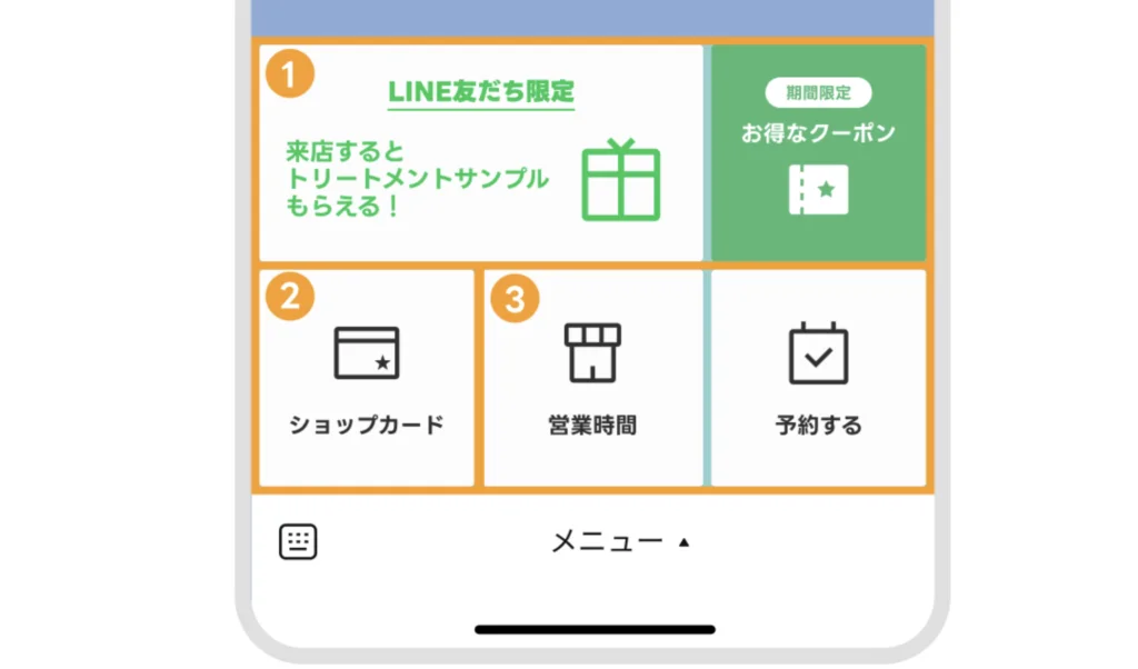 また、LINE公式アカウントはリッチメニューでカスタマイズをすることができます。お客様がLINEでメッセージが届いたら、すぐに予約が取れるような設定にすることで、リピーター対策の基盤にしていきましょう。