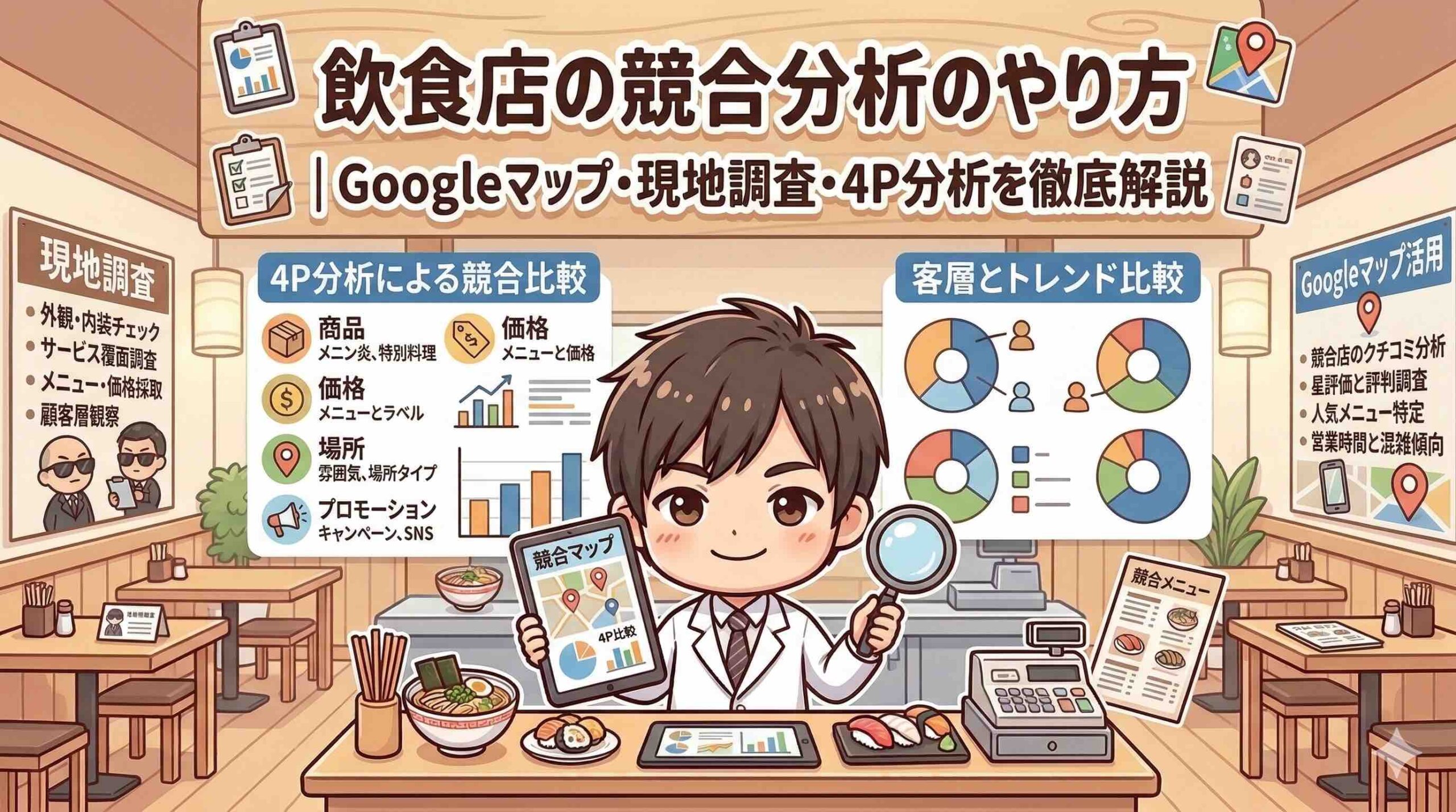 飲食店の競合分析のやり方|Googleマップ・現地調査・4P分析を徹底解説